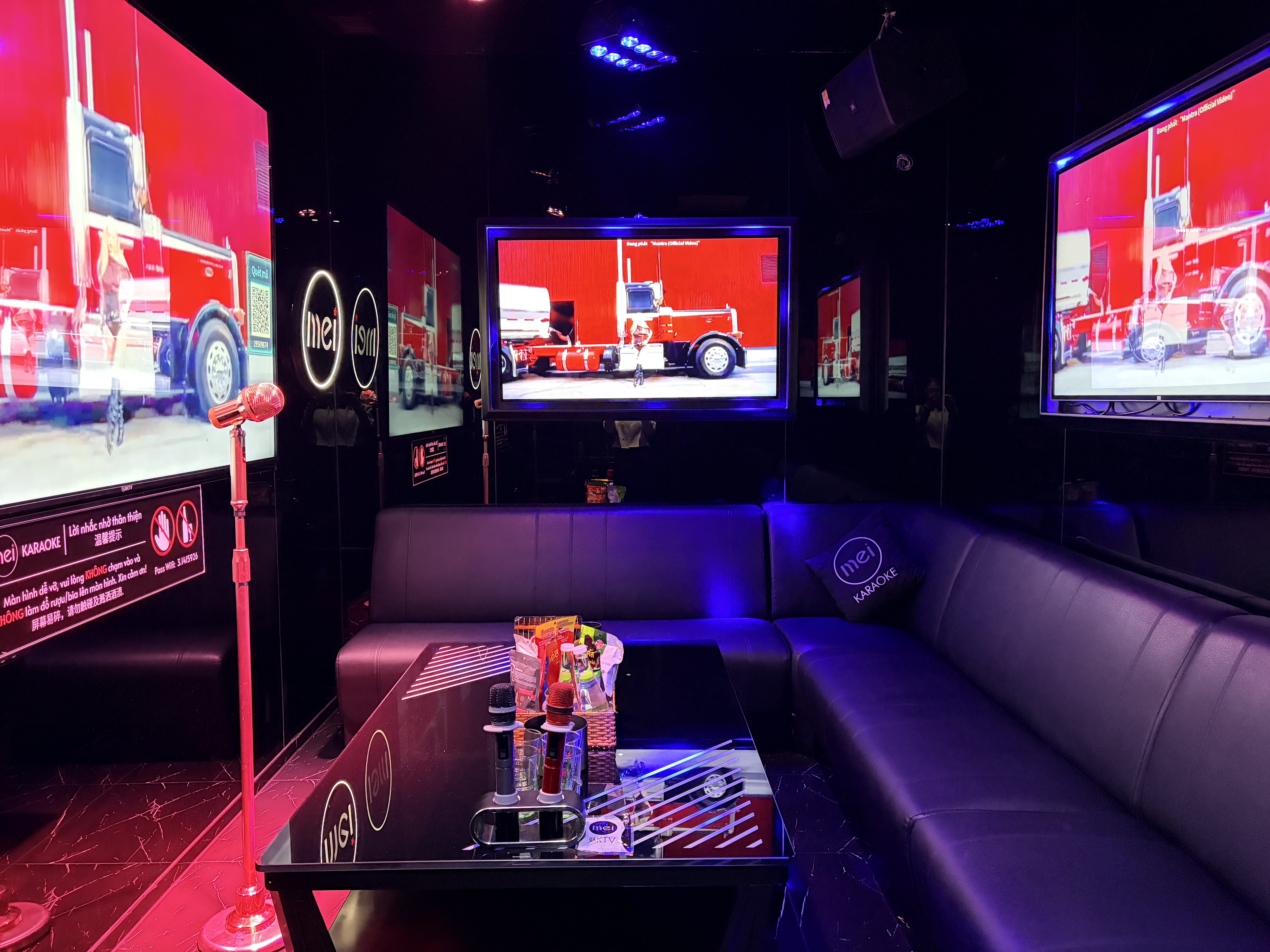Không gian tại Karaoke Mei được thiết kế nhằm mang lại cảm giác như một club âm nhạc thu nhỏ, nơi khách hàng có thể vừa hát vừa tận hưởng bầu không khí sôi động.