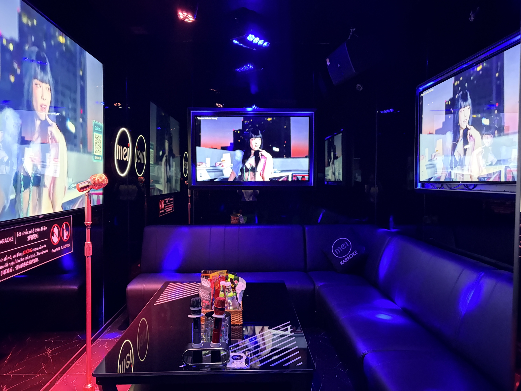 Phòng nhỏ tại Mei Karaoke được thiết kế dành riêng cho nhóm từ 1 đến 4 người, mang đến không gian riêng tư, ấm cúng nhưng vẫn đầy đủ tiện nghi hiện đại. Đây là lựa chọn hoàn hảo cho những buổi hẹn hò nhẹ nhàng, tụ họp bạn thân.