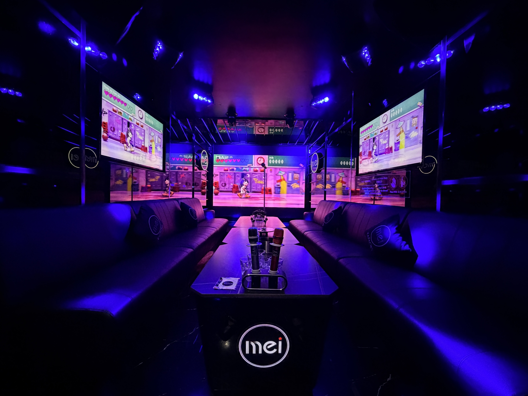 Phòng lớn 9–14 khách tại Mei Karaoke là lựa chọn hoàn hảo cho những buổi tụ họp đông vui nhưng vẫn giữ được sự riêng tư. Không gian rộng rãi kết hợp âm thanh mạnh mẽ và ánh sáng sôi động giúp cuộc vui luôn “cháy” hết mình và đầy ấn tượng